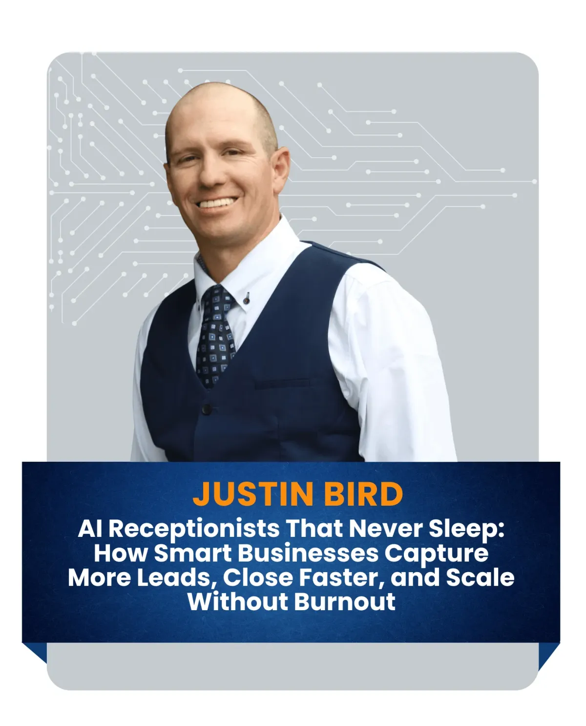 Justin Bird is a certified AI Consultant and motivational speaker specializing in AI automation, intelligent receptionist systems, and business workflow optimization. He helps entrepreneurs and organizations implement practical AI solutions that improve customer experience, increase efficiency, and drive real revenue. With a background in leadership, education, recovery, and real-world business operations, Justin builds AI systems that actually get used — not shelfware. His work includes AI-powered phone receptionists, automated customer follow-up, content engines, and scalable workflows for both small businesses and enterprise teams. What sets Justin apart is his ability to merge cutting-edge AI strategy with raw, real-world motivation. He doesn’t just teach systems — he shifts mindsets. Known for making complex AI simple, actionable, and results-driven, Justin equips people to build smarter businesses and stronger lives at the same time.